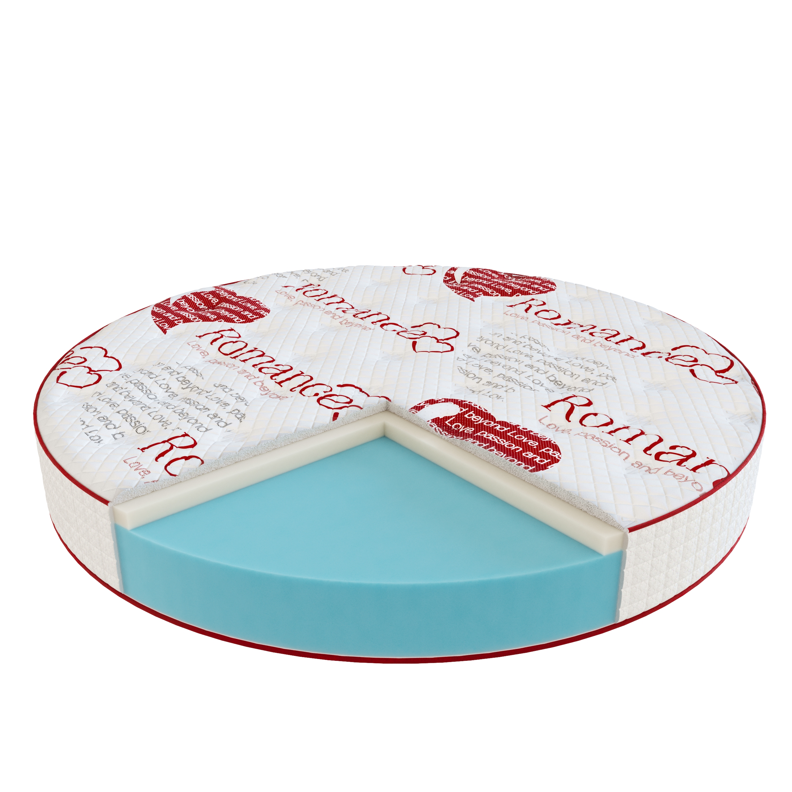 Salteaua ROMANCE MEMORY rotundă din spumă cu memorie este o saltea confortabilă cu o fermitate medie, care se mulează perfect pe forma corpului atunci când este utilizată. Această saltea are stratul superior de spumă Memory Foam cu grosimea de 5 cm si împreună cu husa matlasată dublata cu bumbac natural, ajuta atat la mentinerea unei temperaturi constante cat si la relaxarea corpului. Fabricata din spumă cu memorie de înaltă densitate, oferă un suport excelent și ajută la distribuirea greutății corpului uniform pe întreaga saltea.