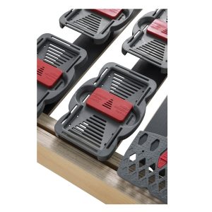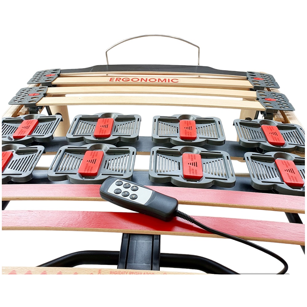 Lamelele din lemn de fag sunt foarte rezistente, elastice si sunt proiectate sa ofere un suport uniform pentru saltea. Ele sunt fixate in amortizori de HYTREL® care este un material termoplastic elastomer care combina proprietatile elastomerilor termoplastici cu cele ale poliamidelor. Acest material este utilizat in diverse aplicatii din diferite industrii, datorita proprietatilor sale unice, fiind un material cu o flexibilitate si durabilitate deosebita. Pe fiecare suport exista un buton rosu care ajusteaza rigiditatea acestuia permitand un reglaj personalizat in functie de preferinte.